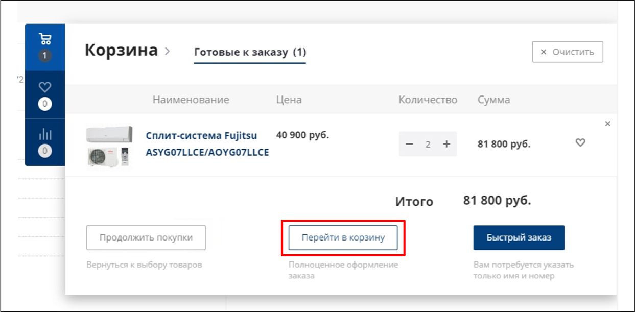 и перейдите к оформлению через кнопки «Быстрый заказ» или «Оформить заказ».